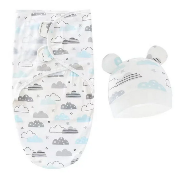 Пелюшка-кокон на липучках для новонародженого, конверт для сповивання з бавовни, Хмара, 0-6 місяців