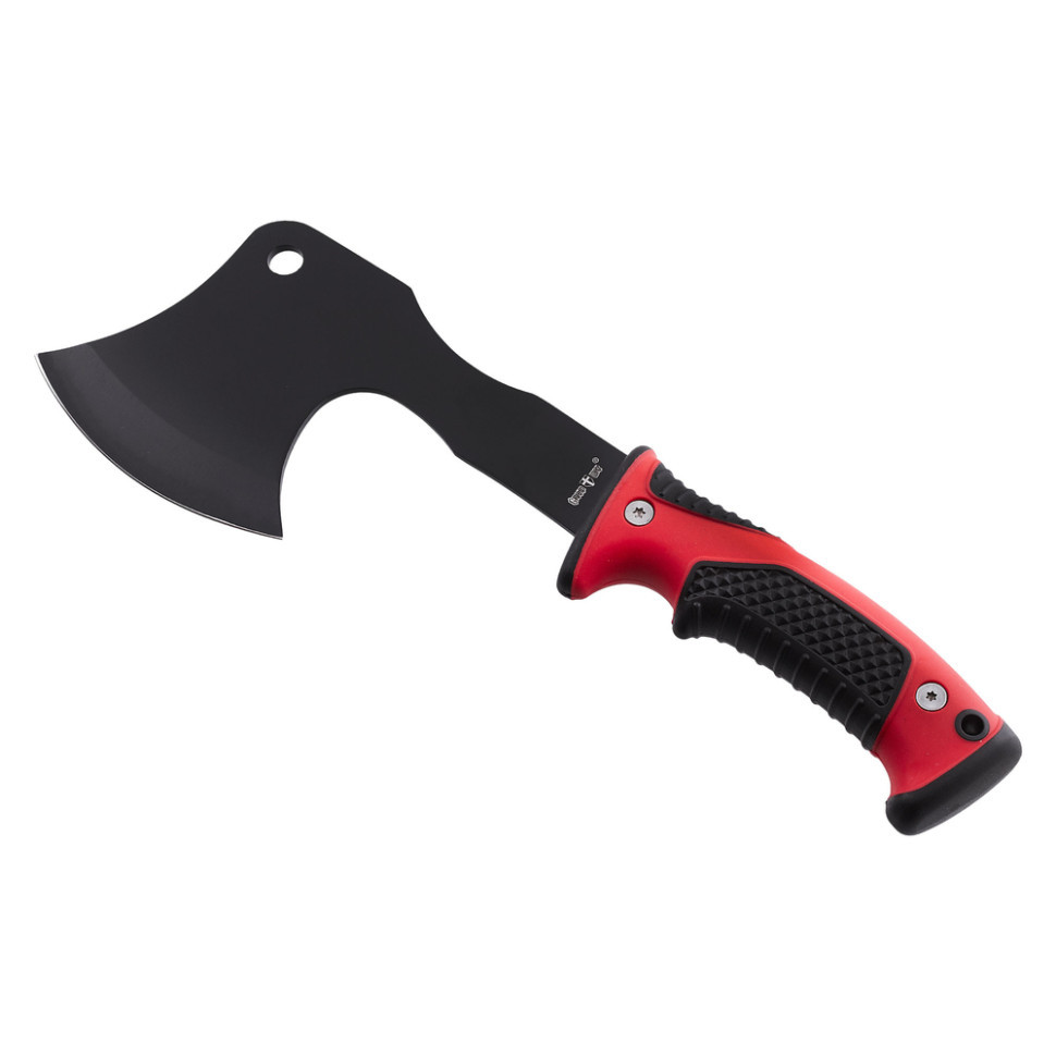 111080 – это надежный и прочный топорик цельнометаллической конструкции. Топор снабжен рукояткой из пластика и резины, анатомичной формы, с выемками, выступами и насечкой, улучшающими цепкость и надежность хвата, а также предотвращающими соскальзывание руки. Служит она и в качестве демпфера, снижающего отдачу при рубке. Совершенно не страшны этой рукояти ни минимальная влажность, ни сильное намокание.