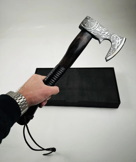 Сокира ручної роботи Драккар, довжина 60 см, натуральні матеріали, сталь У8ГА