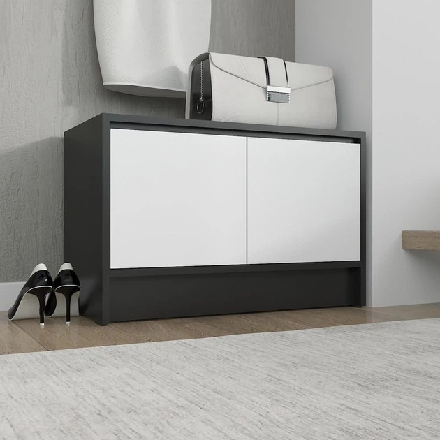 Взуттєва тумба 700х350х456 мм. Тумба у передпокій A-174 Чорний+Білий