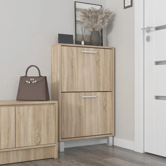 Полиця для взуття підлогова на 2 шухляди, тумба в передпокій для взуття з ДСП (F-158D+B)