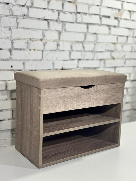 Полиця для взуття в передпокій з ящиком і м'яким відкривним верхом. ДСП сонома трюфель шириною 60 см. Тканина - какао