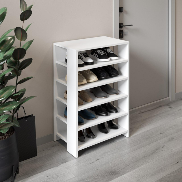 Полиця для взуття, бенкетка, взуттєвий стелаж на 5 полиць в передпокій для взуття 600х900х344 мм Білий