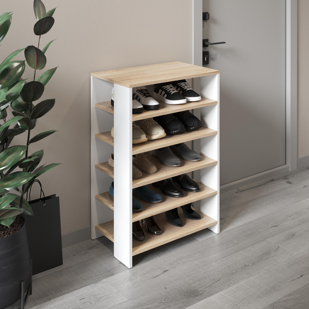 Полиця для взуття, бенкетка, взуттєвий стелаж на 5 полиць в передпокій для взуття 600х900х344 мм Сонома/Білий