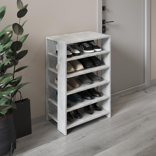 Полиця для взуття, бенкетка, взуттєвий стелаж на 5 полиць в передпокій для взуття 600х900х344 мм Бетон