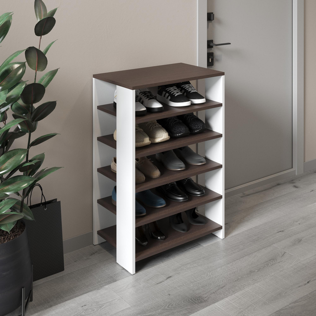 Полиця для взуття, бенкетка, взуттєвий стелаж на 5 полиць в передпокій для взуття 600х900х344 мм Венге/Білий