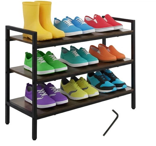 Стелаж (полиця) для взуття 3-рівневий в стилі лофт, металевий з дерев'яними полицями 58.5 x 79 x 30 см Ruhhy (27038)