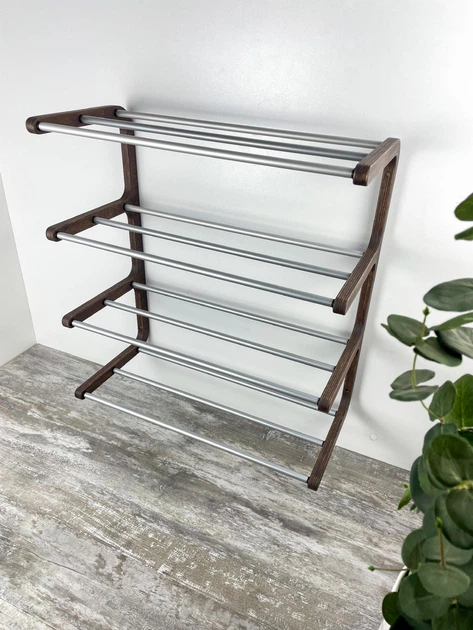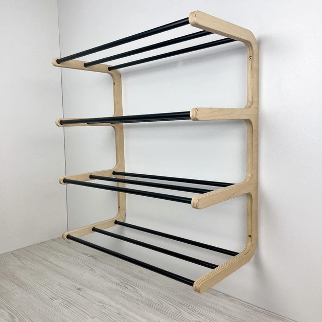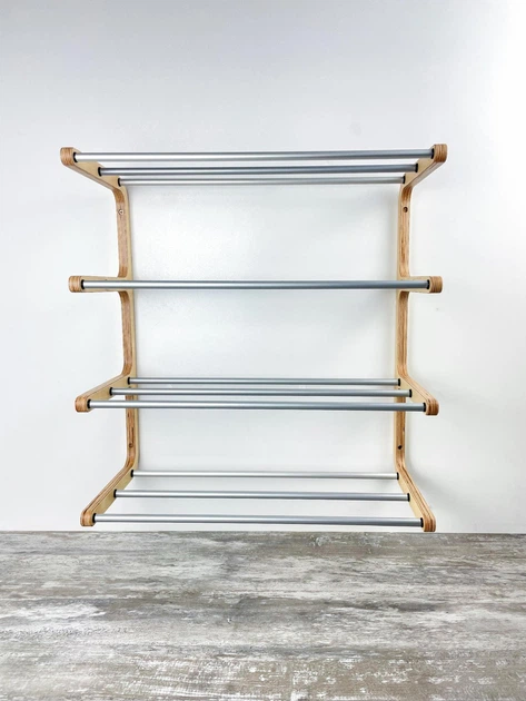 Полиця для взуття настінна відкрита Дерево + Алюміній 56*25*54 см