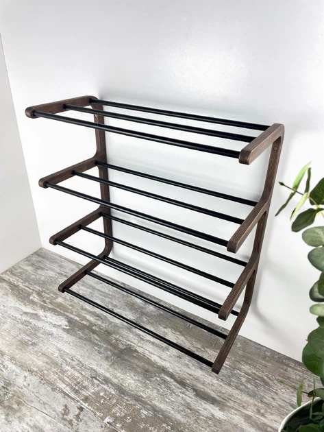 Полиця для взуття настінна відкрита Горіх + Чорний 56*25*54 см