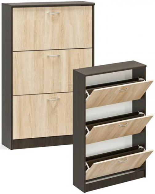 Тумба для взуття МЕБЛІ-СЕРВІС ТО-800 3-х дверна Венге темний + Дуб самоа
