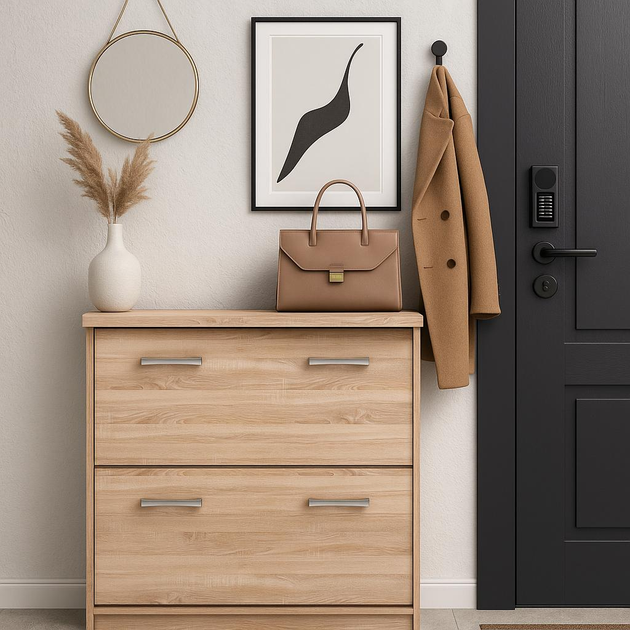 Стильна закрита вузька тумба для взуття 2К 80 см у передпокій коридор у сучасному стилі дуб сонома ЛДСП Top-Mix VMV Holding