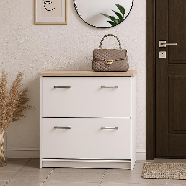 Сучасна закрита біла тумба для взуття 2К 80 см вузька в передпокій коридор у скандинавському стилі ЛДСП Top-Mix VMV Holding