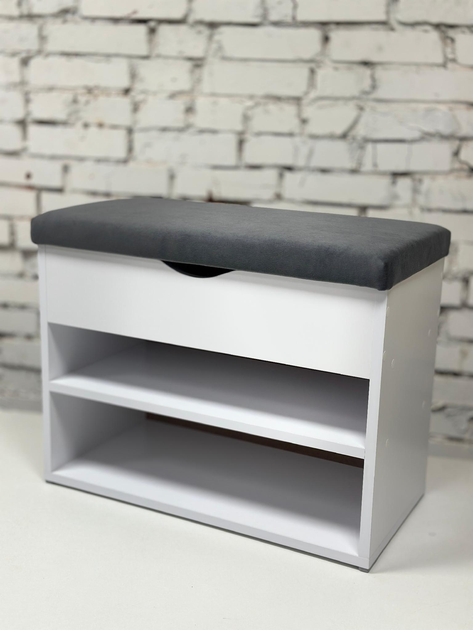 Полиця , стелаж для взуття з відкривним верхом в білому кольорі. Шириною 90 см. Тканина графіт