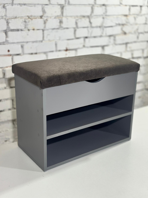 Тумба для взуття з ящиком і м'яким відкривним верхом. ДСП графіт. Шириною 90 см. Тканина - шоколад