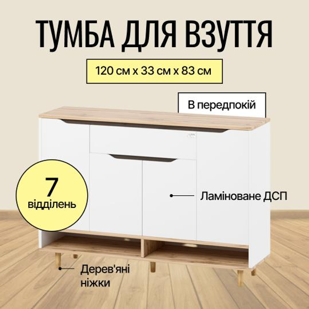Тумба для взуття в передпокійLION Салліван Тумба-2 Німфея Альба (білий)/Дуб Аппалачі (LION-041007)