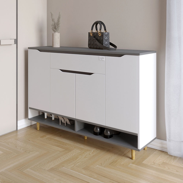 Тумба для взуття у передпокій LION Салліван Тумба-2 Нимфеа альба (білий)/Самоа Димчастий (LION-041144)