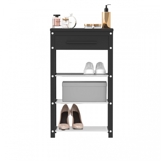 Банкетка з полицями для взуття Fenster «NVD-10 500» 50х32х86.5 см. Чорний
