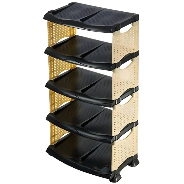 Полиця Efe plastics для взуття 5-ярусна чорно-бежевого кольору "Ротанг"
