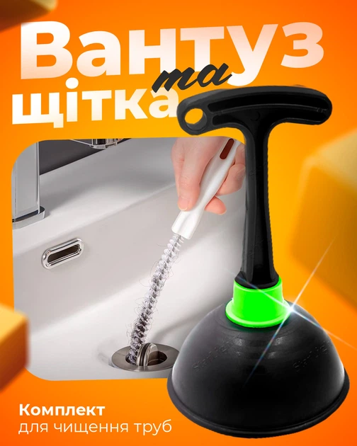 Комплект інструментів для чищення труб вантуз для раковини та унітазу від засмічень гнучка щітка для прочищення водостоку та