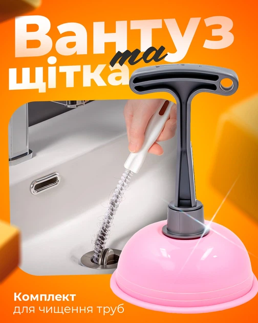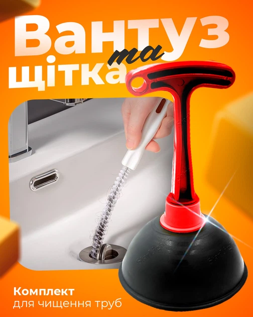 Комплект інструментів для чищення труб вантуз для раковини та унітазу від засмічень щітка гнучка для чищення водостоку та за