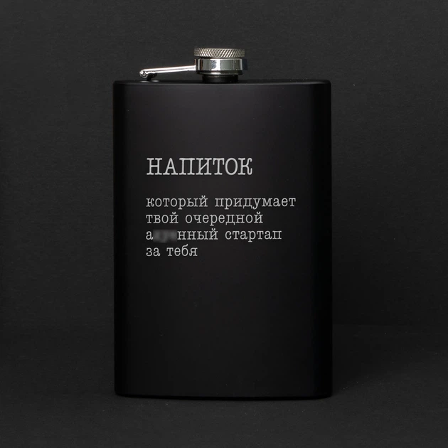 Фляга "Напій, який придумає твій стартап", російська, Крафтова коробка