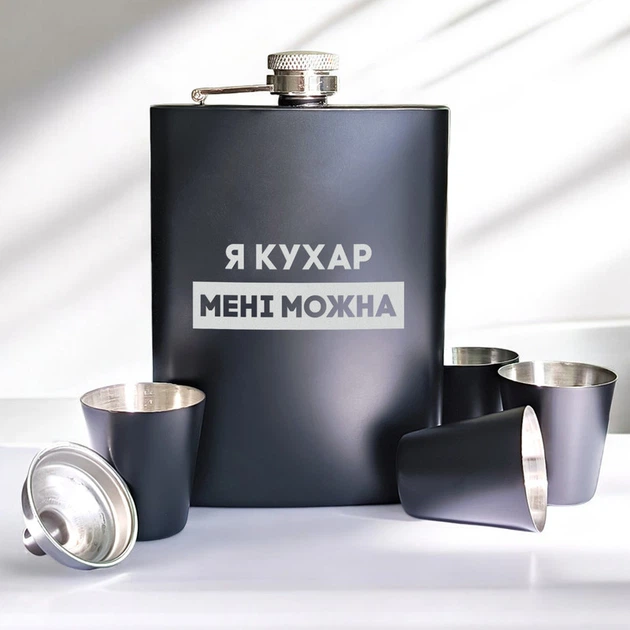 Набір чорна фляга з чарками "Я кухар мені можна" у крафтовій коробці
