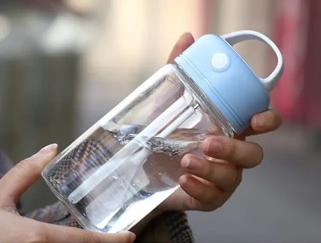 Пляшка шейкер для води 380 мл фляга прозора для напоїв з ручкою