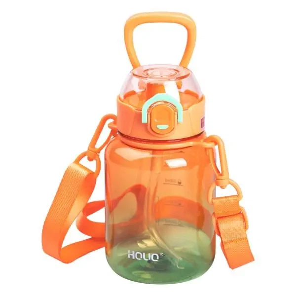 Бульба для напоїв Yiwu з ремінцем та трубочкою 700 мл, помаранчевий