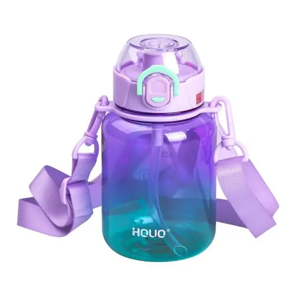 Бульба для напоїв Yiwu з ремінцем та трубочкою 700 мл, фіолетовий