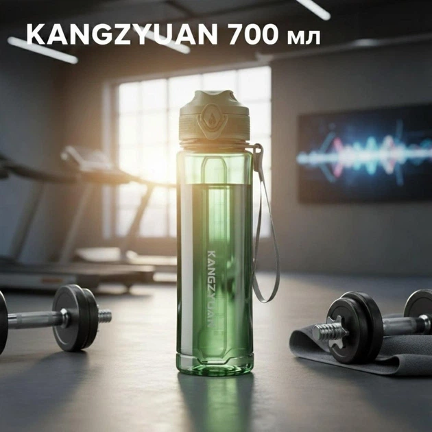 Екологічна зелена тританова пляшка KANGZYUAM 700 мл із захистом від протікання та стильним дизайном