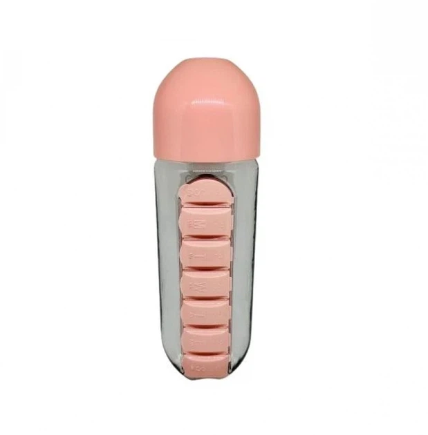 Пляшка для води Pill Bottle з контейнером для таблеток рожева Без бренду