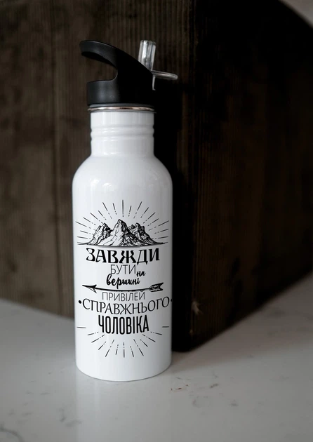Пляшка для води Marmyza "Завжди бути на вершині" - З трубочкою - 600 мл