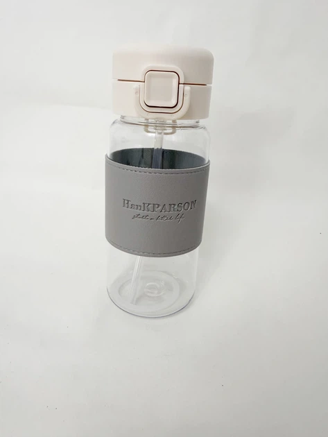 Пляшка для води із трубочкою 400 мл термостійка багаторазова Прозора Сіра