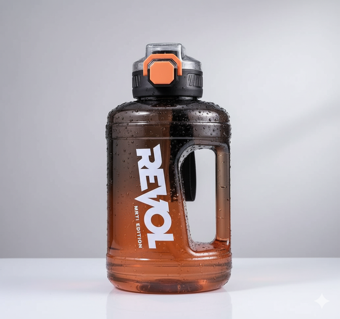 Пляшка для води 1600 мл з соломинкою та захистом від протікань помаранчева