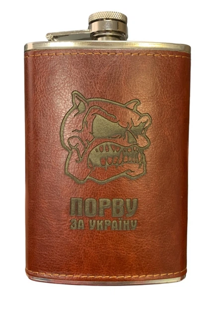 Фляга ТМ 4Profi нержавіюча з гравіюванням коричнева Порву за Україну 9OZ 256 мл