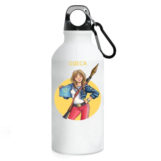 Фляга Одеса (пляшка) для води з карабіном Металева #00010 500 мл Білий