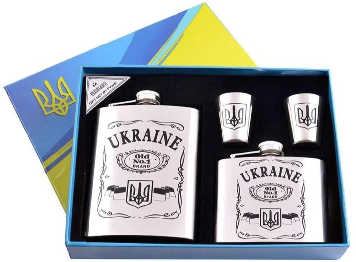 Набір подарунковий Moongrass 4 в 1 UKRAINE Герб 2 фляги 230 ml, 150 ml / стопки 2шт