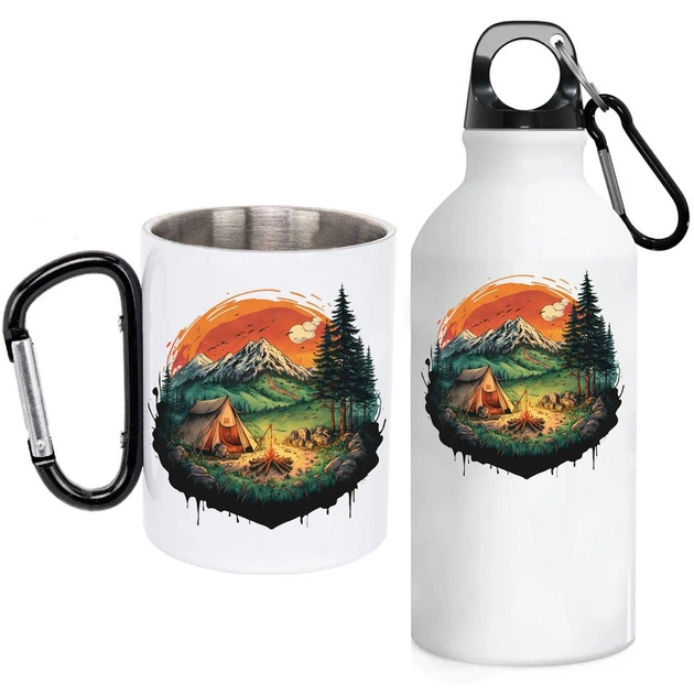 Набір металева фляга з карабіном + чашка з карабіном #061 (для туризму, кемпінгу, походів, подорожей)