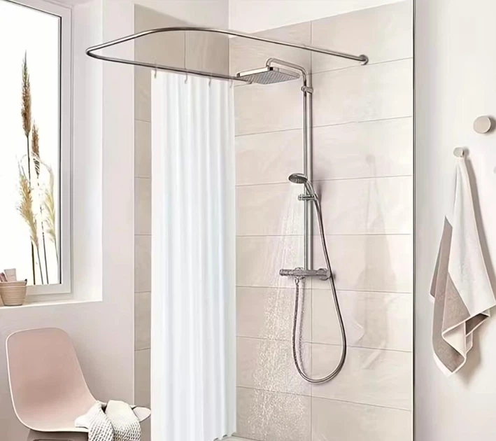 Карниз для ванної Artlend 90х90х90 см штанга для шторки у ванну П-подібна із нержавіючої сталі