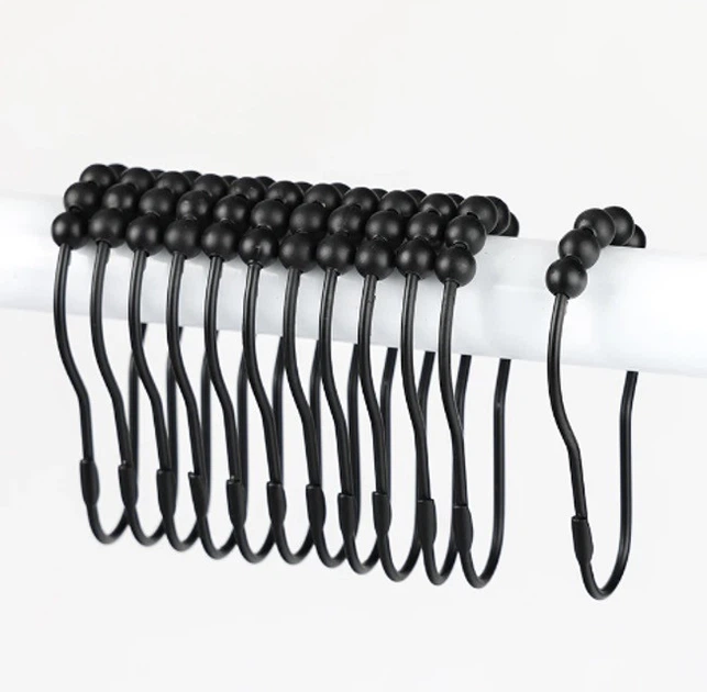 Кільця на шторку у ванну кімнату металеві у чорному кольорі 12 штук