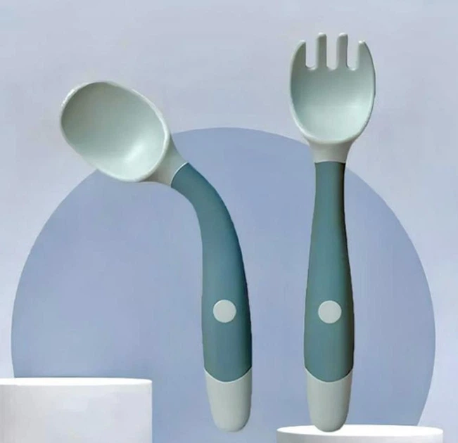 Силіконові гнучкі ложка та вилка 360 блакитний