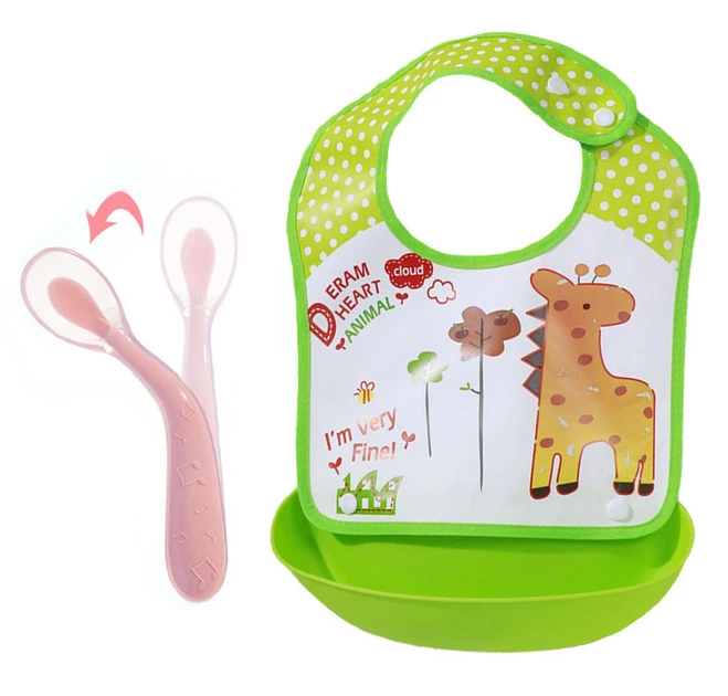 Набір Слюнявчик з відстібними кишенею Жираф 34х23 см і силіконова ложечка (n-799)