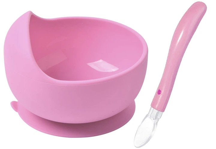 Набір силіконова кругла тарілка Y8 для перших страв та ложка Рожевий