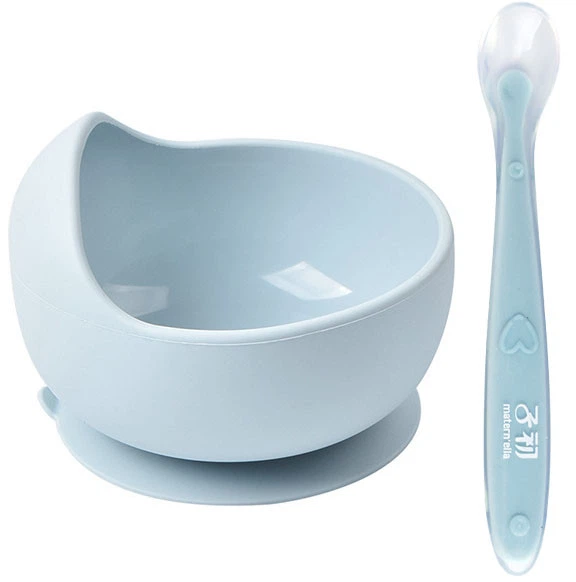 Набір Y5 силіконова кругла тарілка для перших страв, ложка Блакитний