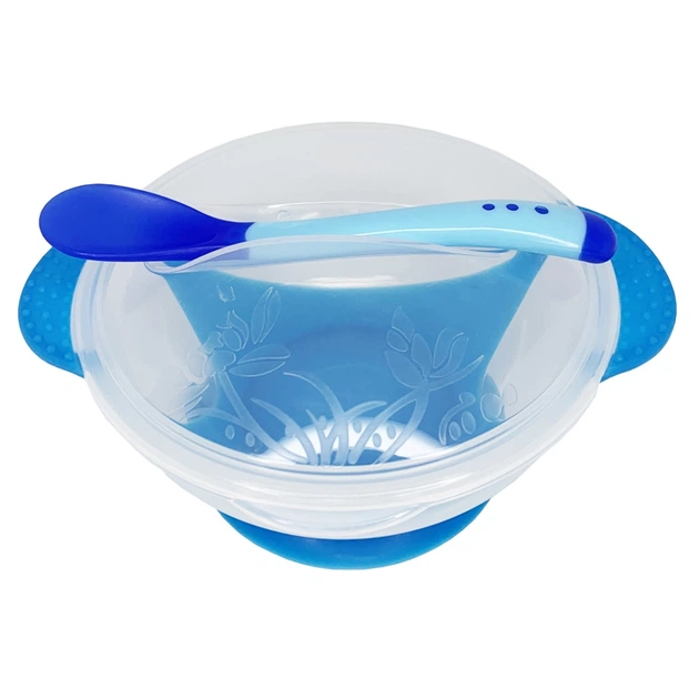 Тарілка на присосці прозора MGZ-0100(Blue) з термоложкою та кришкою