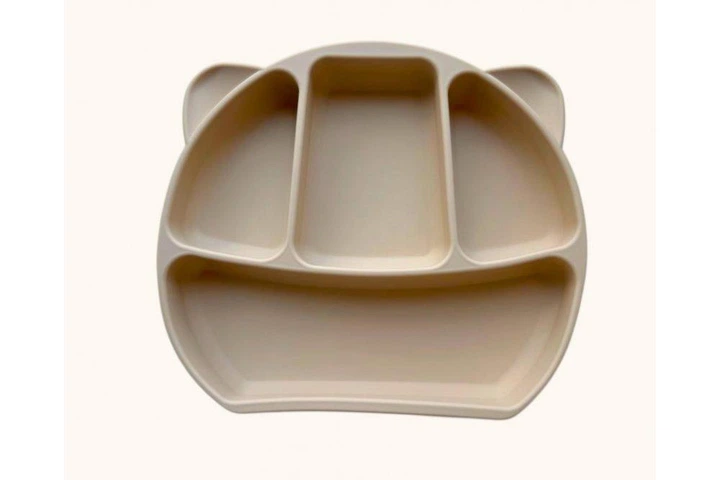 Силіконова дитяча тарілка 4-х секційна "Ведмедик" Бежева (1210) (2731085317)