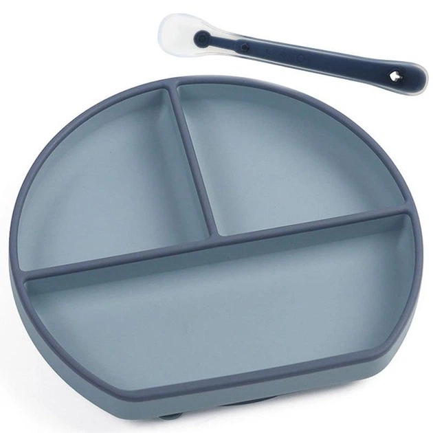 Силіконовий посуд 2Life тарілка на три секції з присоскою ложкою для першого прикорму Синій v-12812