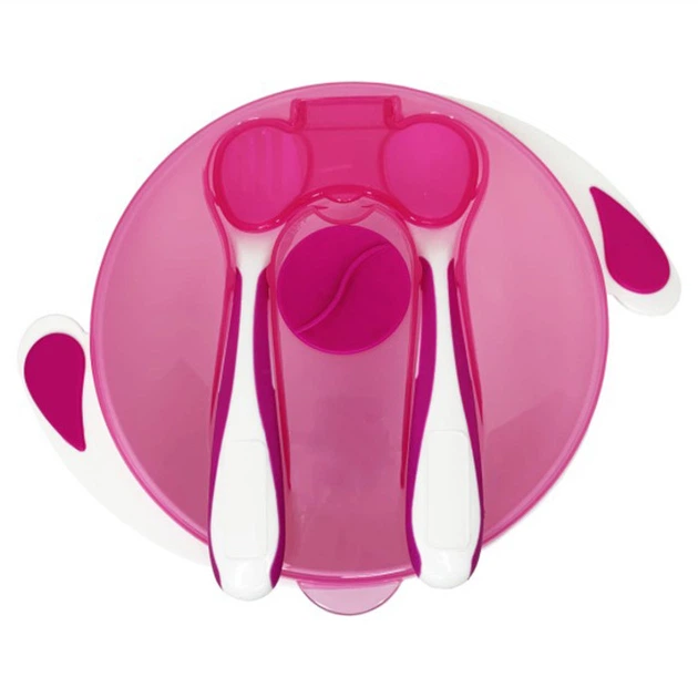 Тарілка на присосці з ложкою та вилкою Mega Zayka MGZ-0109 (Crimson) 350 мл