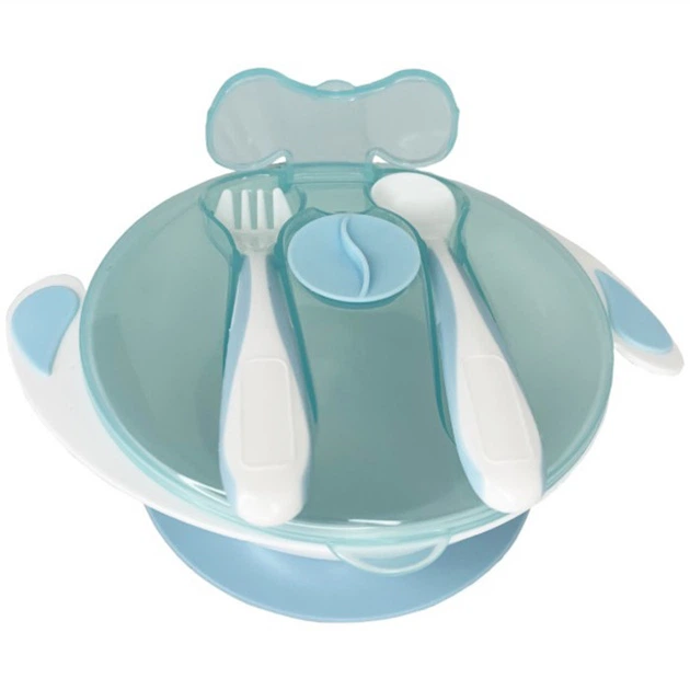 Тарілка на присосці з ложкою та вилкою Mega Zayka MGZ-0109 (Light-Blue) 350 мл