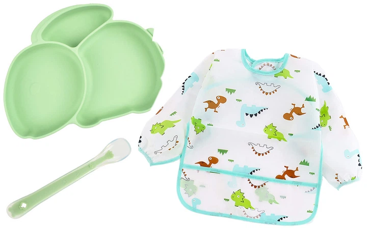 Набір посуду 2Life Трисекційна тарілка Кролик Y3 ложка та нагрудник з рукавами принт динозаври n-12900